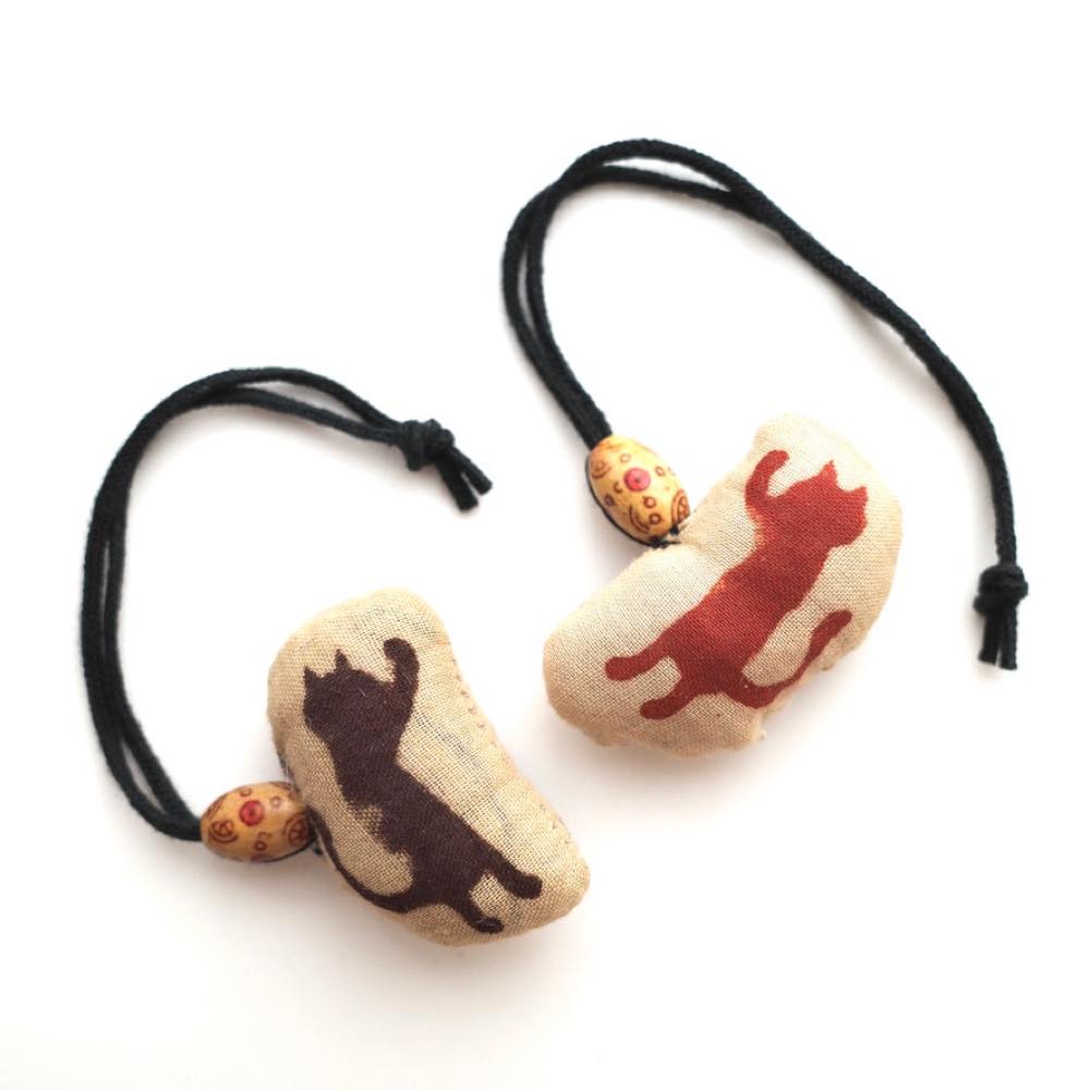 admi 堀さんのイラスト “FLYING CAT” の版を使ったストラップ&オーナメント。ふわふわの綿入り。日暮里店の人気アイテムです。