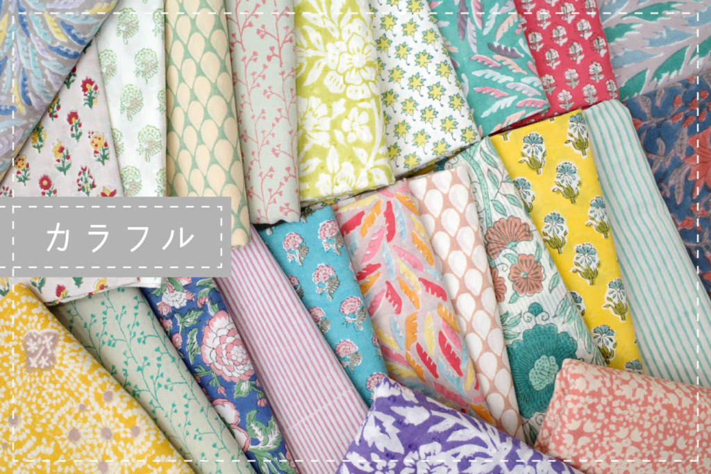 1年間、検品やご注文の際の端数などで出た着分の大きさのカット済生地をざっくり「カラフル・シック」の2グループに分け、それぞれから6種を組み合わせてお届けします。組合せと長さはおまかせとなりますが、ブーケのように柄や色が引き立て合うようなセットにします♪柄×柄で魅せる作品にも使っていただけたら嬉しいです。