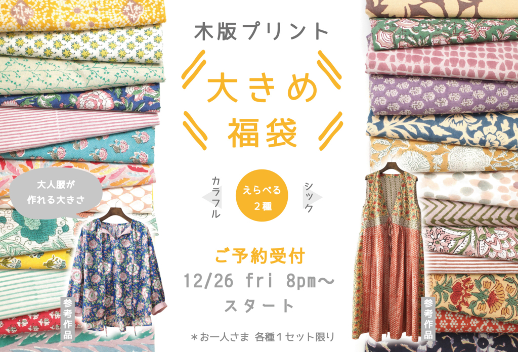 『木版プリント大きめ福袋』の選べる2種「シック」の参考セットを使用して作りました。