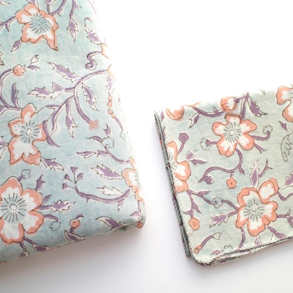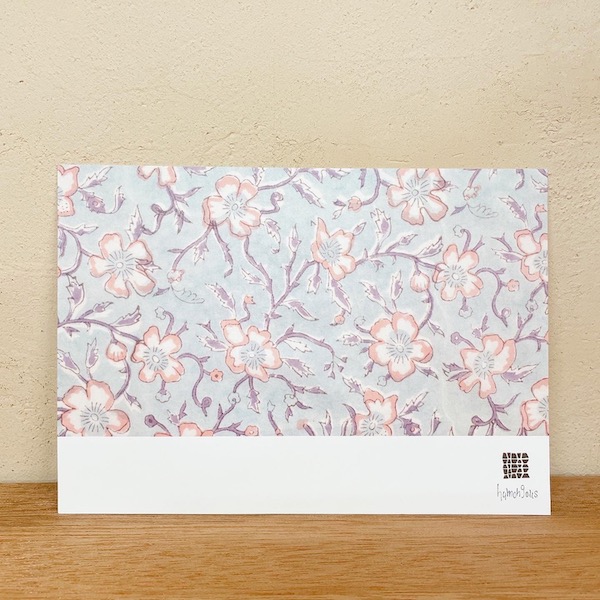 オンラインショップにてご注文いただいた際にメッセージを書いて添えております。白い部分を切り離すと一筆箋として再利用ができます。裏面のQRコードからFLOWER216の一覧ページにアクセスいただけますので、生地が気になるな〜という時はぜひチェックしてください。